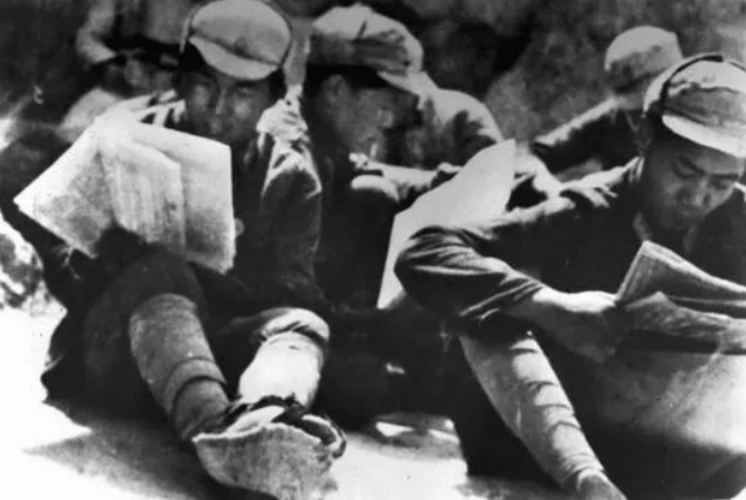 中國(guó)人民抗日軍政大學(xué)的學(xué)員在學(xué)習(xí)整風(fēng)文件。